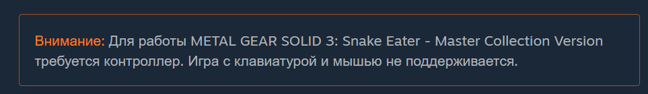 Однако пока релиз Metal Gear Solid, Metal Gear Solid 2 Sons of Liberty и Metal Gear Solid 3 Snake Eater на ПК в Steam вызывает смешанные чувства. Дело в том, что Konami пока не обеспечила поддержку клавиатуры и мыши.