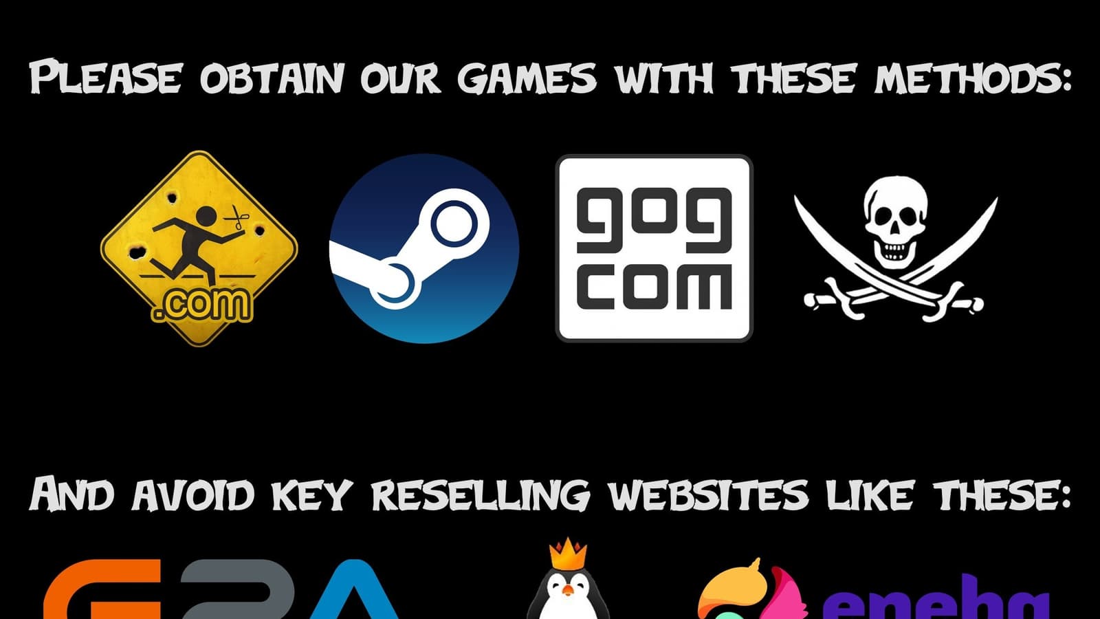 «Сайты, перепродающие ключи, вредят независимым разработчикам, таким как мы. Есть много способов получить наши игры, и мы по-прежнему предпочитаем пиратство покупке на этих сайтах. Незаконно полученные ключи являются источником денег для мошенников и в некоторых случаях могут даже повлиять на вас как на покупателя».