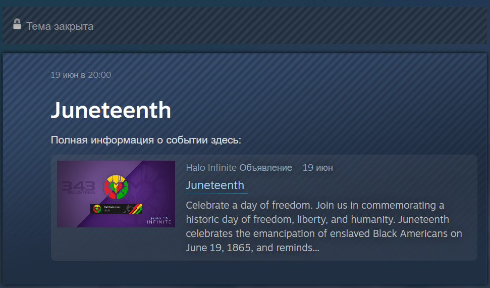 Возможно, что большого значения этому не придали бы в сообществе игры в Steam, вот только так получилось, что создатели Halo Infinite заблокировали возможность оставлять комментарии под постом о Дне Свободы.