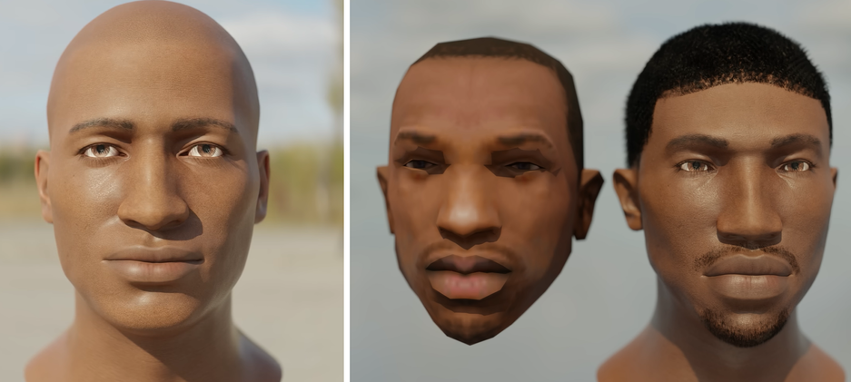 Для начала он решил собрать новую модель CJ, главного героя GTA San Andreas. Первая итерация получилась не очень (слева), затем получилось получше (справа), но всё же не дотягивало до оригинала.