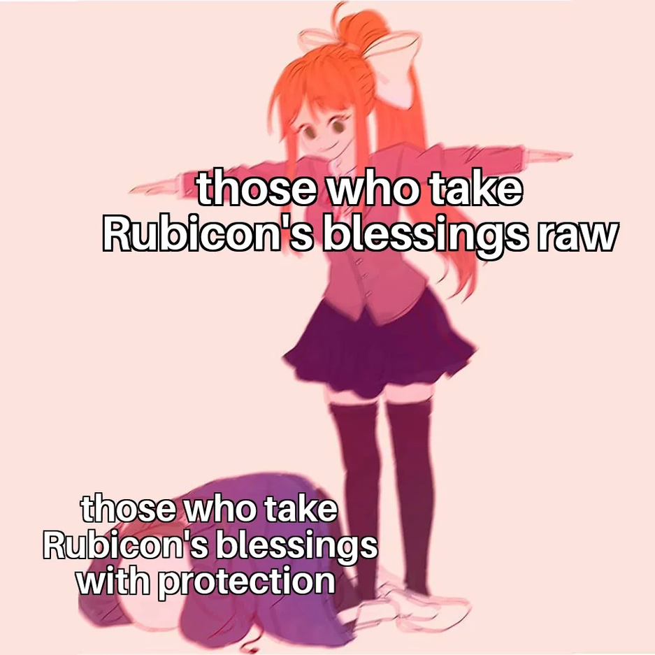Также приводят цитату «You gotta take Rubicon's blessings raw…Hits your brain with a pop and a sizzle», которая стала поводом для создания следующего мема.