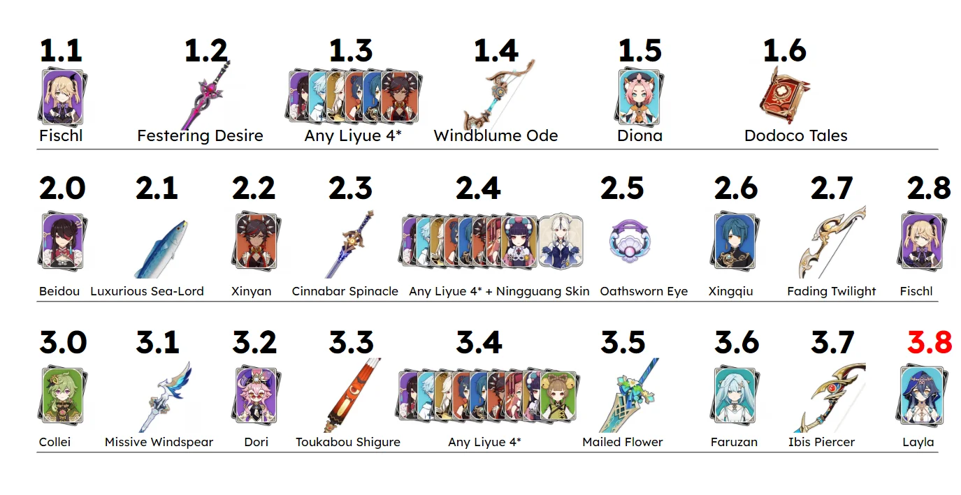 Судя по графику Balcika: оружие в Genshin Impact выдавали 11 раз, выбора игрокам не предоставляли; персонажей раздавали 13 раз, при этом трижды предоставили возможность выбрать из списка.