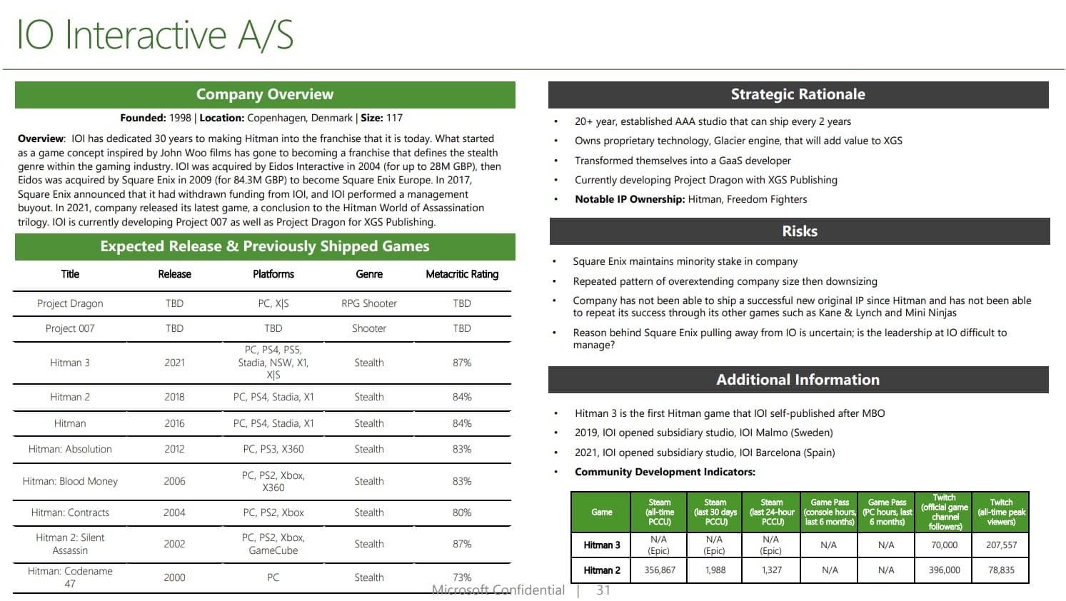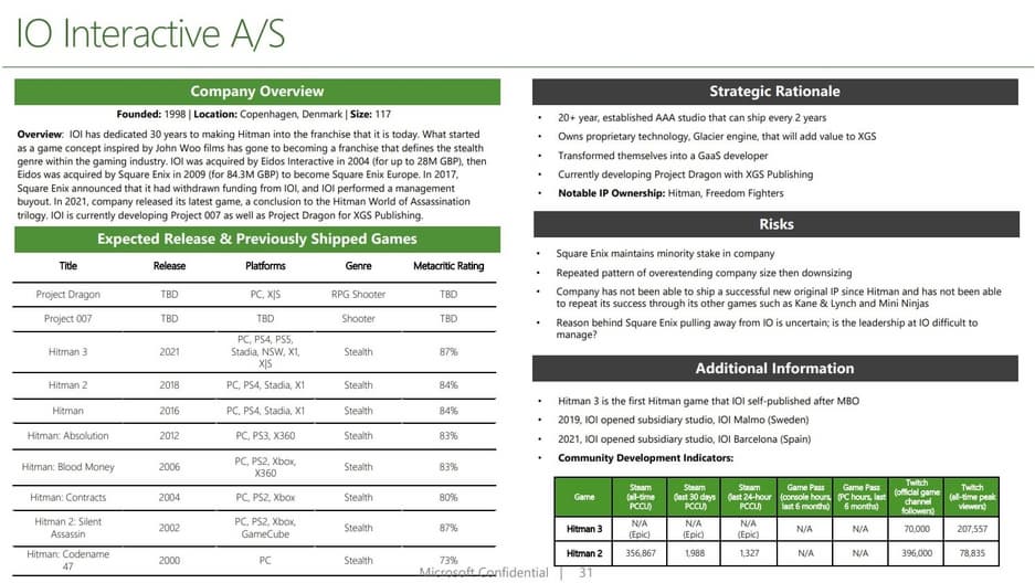 IO Interactive подтвердила работу над таинственной Project Dragon, но не раскрыла более подробной информации. Внутренние документы из судебного дела о покупке Activision Blizzard указывают, что игра выйдет только на ПК и Xbox Series X|S.