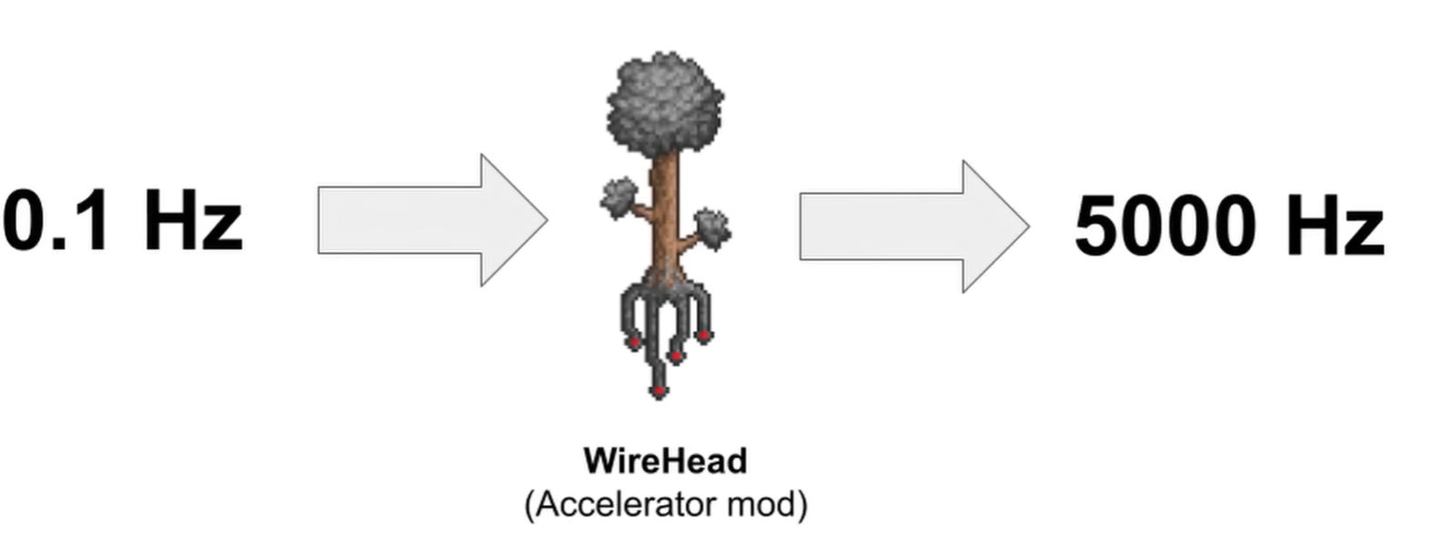Terraria оказалась не очень готова к тому, что внутри игры соберут столь гигантскую постройку (ПК). From Scratch провёл оптимизацию, сделал мод и ускорил работу ПК в 50 тысяч раз: скачок производительности с ~0.1 Hz (0.1 инструкций в секунду) до 5000 Hz (инструкций / сек.).