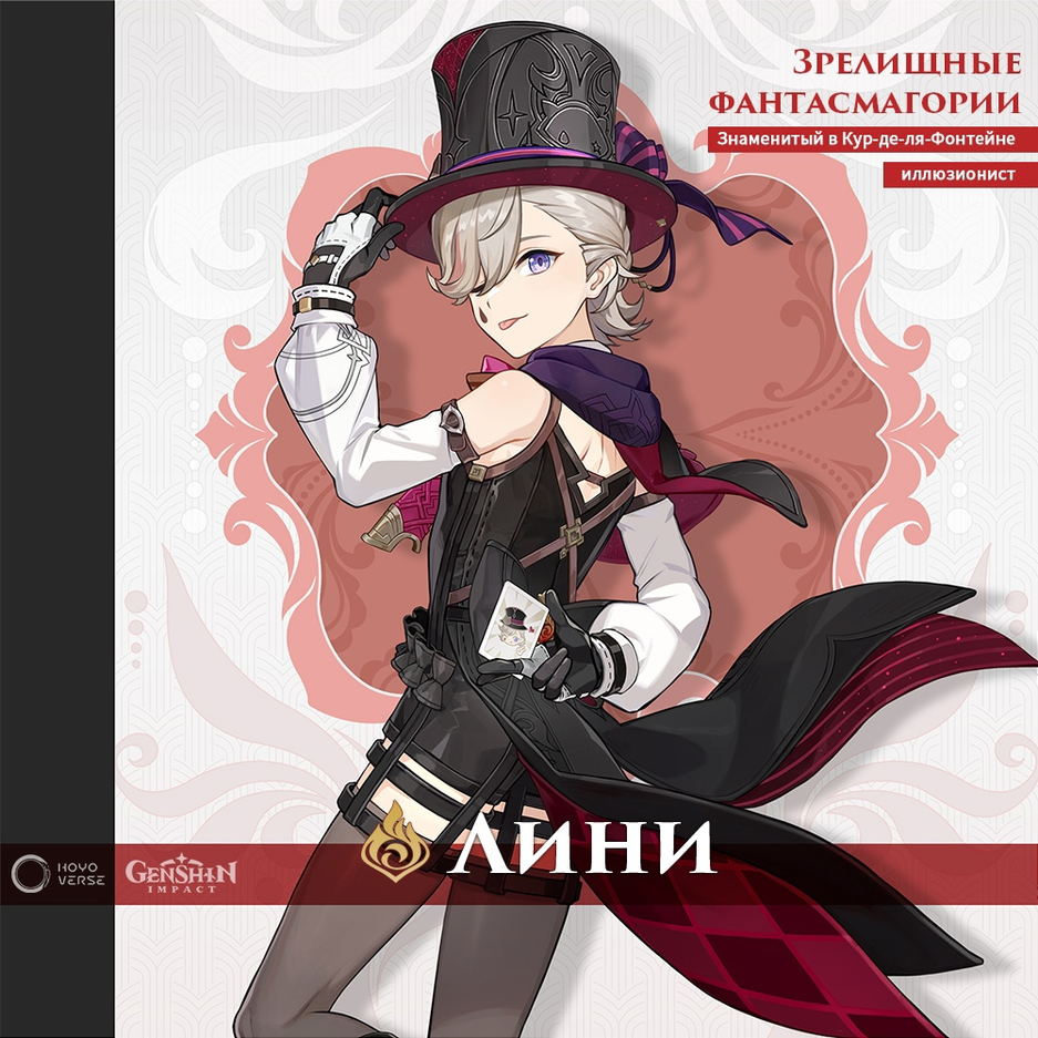 Лини: ожидается с обновлением 4.0. Пиро-персонаж, ожидаемая редкость 5 звёзд.
