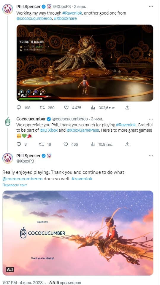 «Мы ценим это, Фил, большое спасибо за то, что играете в Ravenlok. Мы также ценим ваше участие в ID@Xbox и Xbox Game Pass. Давайте произнесём тост за ещё большее количество игр».