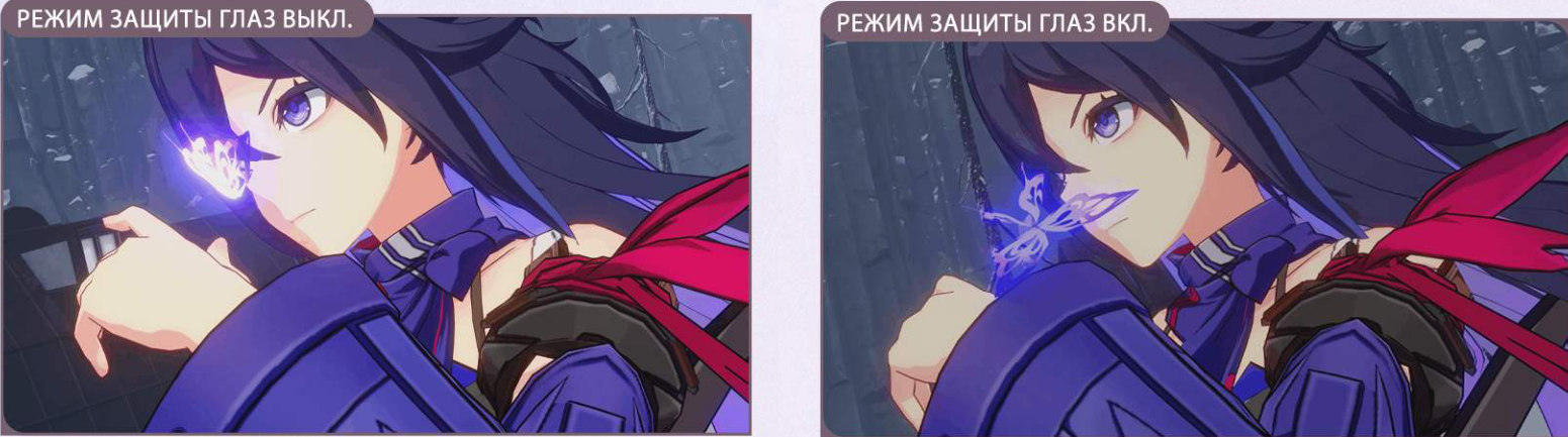 Honkai Star Rail получит режим защиты глаз, вот так это выглядит на примере Зеле (некоторые игроки жаловались, что их глазам трудно переносить эффекты). В меню его можно будет найти «Смартфон – Настройки».