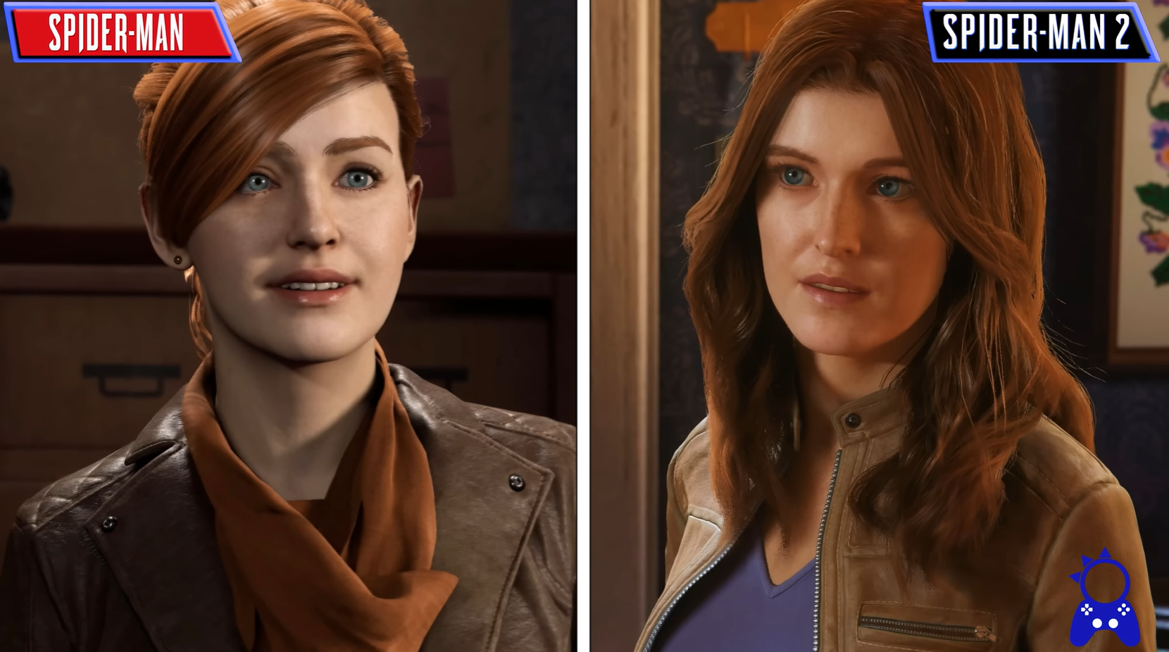 Не трудно заметить, что в Marvel's Spider-Man 2 знакомые персонажи преобразились. В очередной раз досталось не только внешности Питера Паркера — образ Мэри Джейн кардинально обновили (актрису не меняли); Майлз Моралес тоже изменился (второй Человек-паук). В целом уровень детализации подрос.
