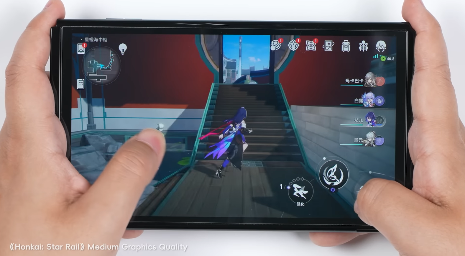 Genshin Impact через Android работала ужасно (когда-то анонсировали Switch-версию игры; теперь понятно, почему о ней не напоминают), а вот Honkai Star Rail пошла на удивление хорошо — более 40 FPS.