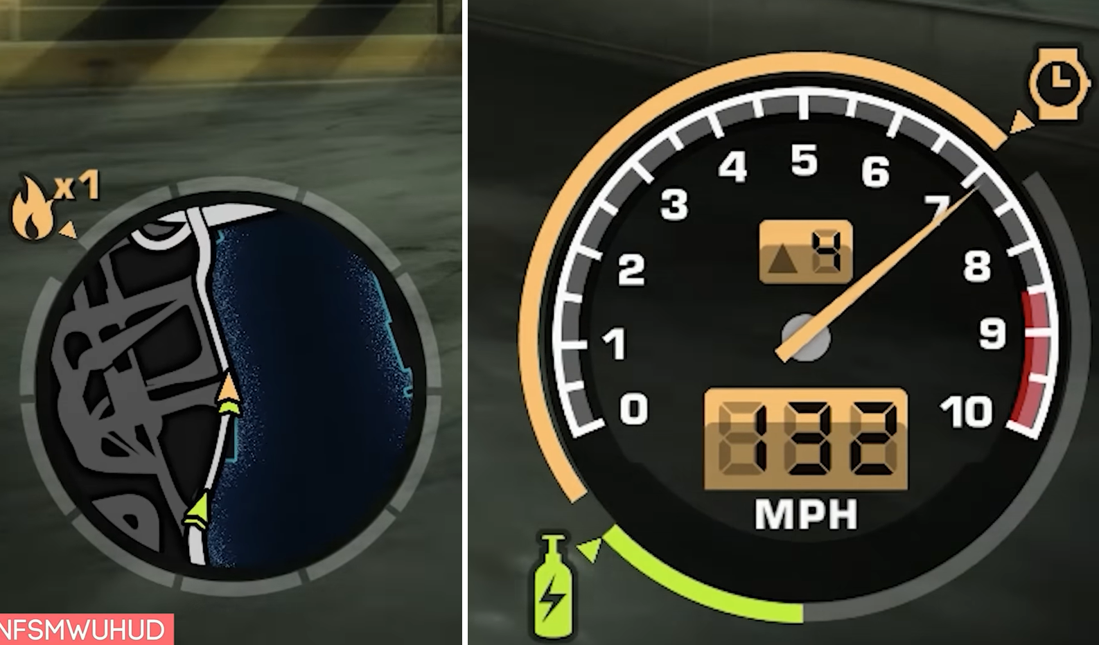 Модом NFSMW обновляются элементы интерфейса, например вот HD-радар и спидометр.