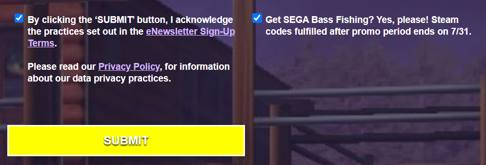 Желающим получить ключ SEGA Bass Fishing для активации в Steam необходимо подписаться на рассылку. Для этого нужно заполнить форму, доступную по ссылке здесь.