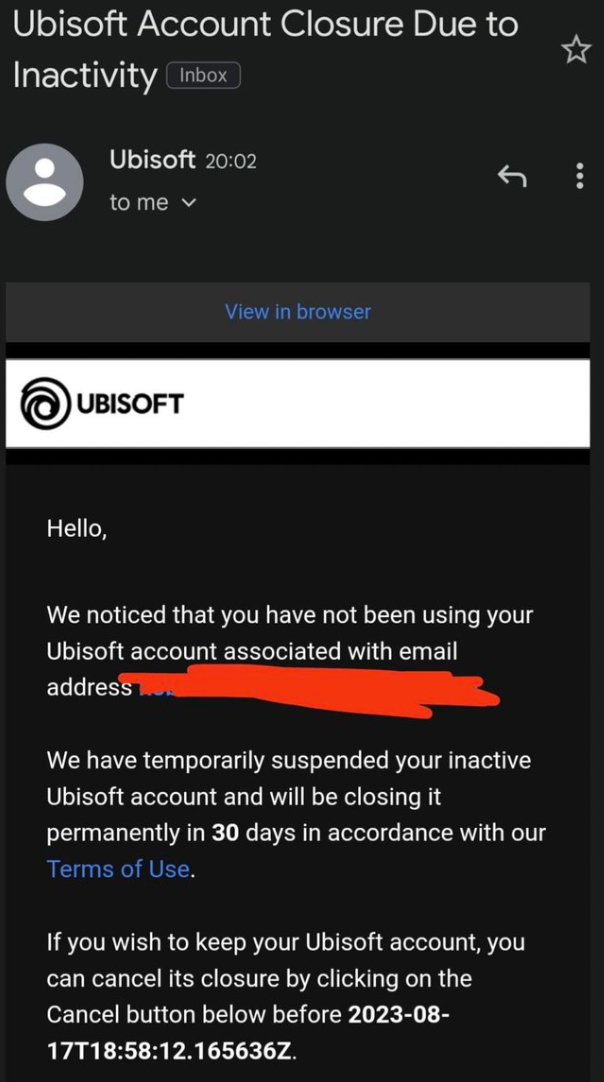 Подобное письмо не нечто новое, оно напомнило о другом инциденте 2021 года. Геймеру снесли учётную запись Ubisoft Connect со всеми играми. Письмо с предупреждением улетело в спам — он банально не знал о происходящем с его аккаунтом.