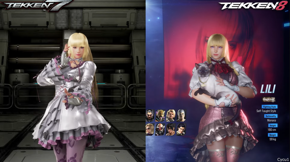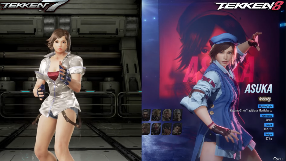 Cycu1 сравнивает модели бойцов, в Tekken 8 образы персонажей несколько отличаются, но узнаваемые черты вполне просматриваются.
