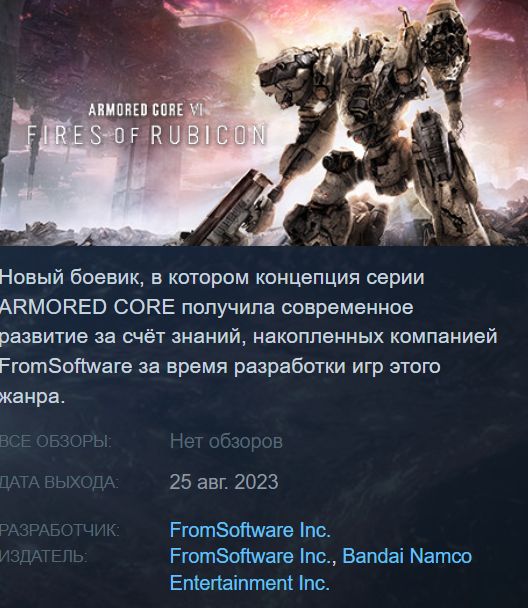 Теперь стандартная версия Armored Core 6 Fires of Rubicon в Steam стоит: