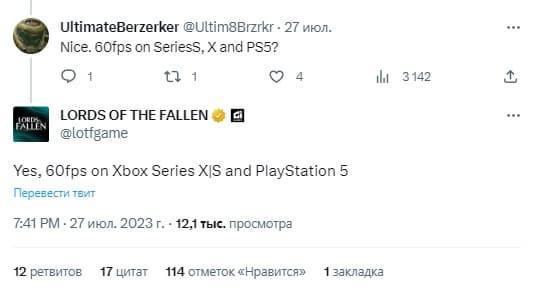 Но, похоже, Lords of the Fallen к таким игра не относится. Она будет работать при 60 fps на PS5 и XSX|S, что пообещали разработчики в Twitter.