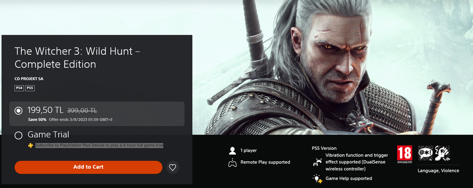 The Witcher 3 Wild Hunt Complete Edition можно приобрести в PlayStation Store по сниженной цене, обновлённую версию игры продают за 199.50 лир (акция актуальна до 3 августа).