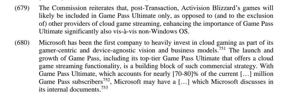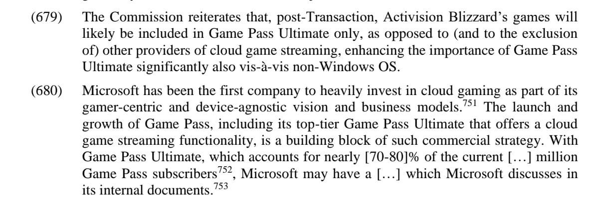 Официальные представители европейской компании считают, что игры Activision Blizzard после завершения поглощения зарезервированы для покупателей Xbox Game Pass Ultimate. В документе говорится, что эти игры не попадут в обычный Xbox Game Pass, в PC Game Pass и Xbox Game Pass Core.