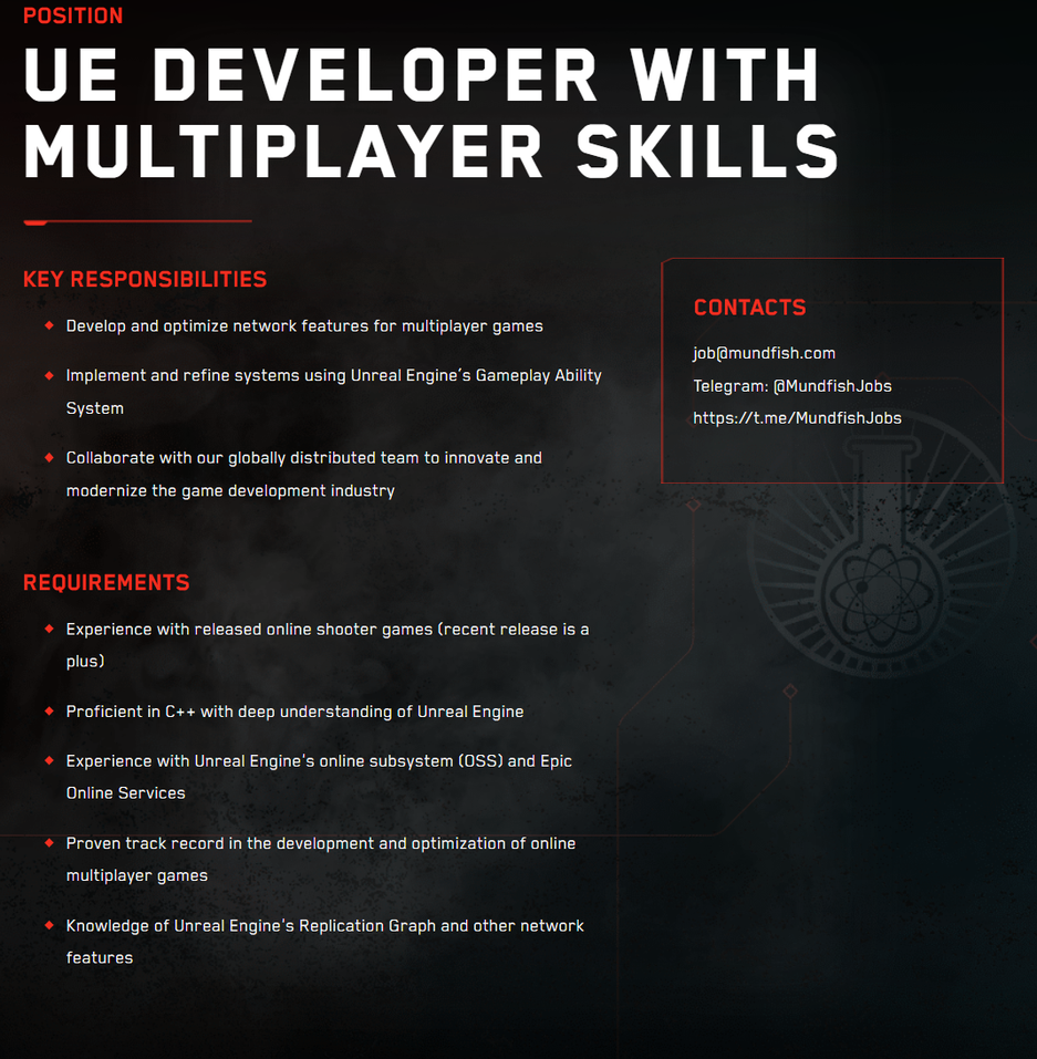 Впоследствии авторы Atomic Heart переиграли концепцию, получилась одиночная игра. Однако недавно на сайте Mundfish опубликовали вакансию со специфическими требованиями.