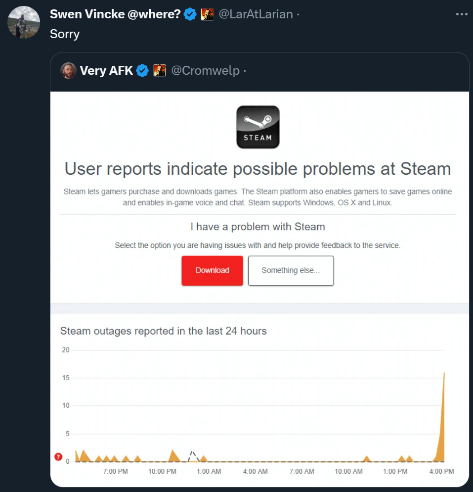 Босс Larian Studios Свен Винке (Swen Vincke) обратил внимание на бурления в социальной сети и ответил весьма лаконично: «Извините».