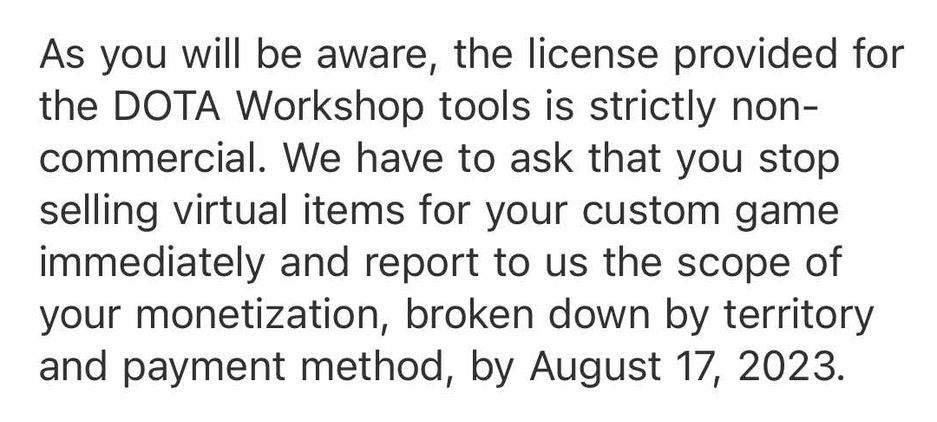 Оказывается, юристы Valve связываются с создателями режимов Dota 2 и требуют убрать монетизацию. Срок дали до 17 августа.