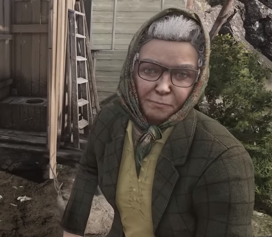 Для сравнения, вот так Баба Зина выглядит уже в актуальной версии Atomic Heart. Героиня значительно преобразилась.