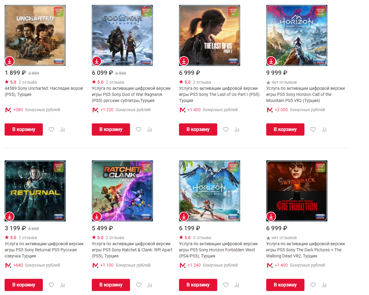 - Активация The Last of Us Part 1 (Турция) — 6999 рублей.