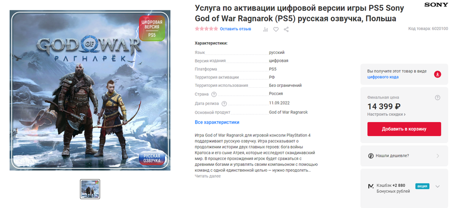 Если God of War Ragnarok для турецкого аккаунта предлагают за 6099 (6999 рублей), то в случае с Польшей стоимость составит 14399 рублей. Отмечается, что польская версия GoW Ragnarok имеет русскую озвучку, а у Турции указаны лишь субтитры.