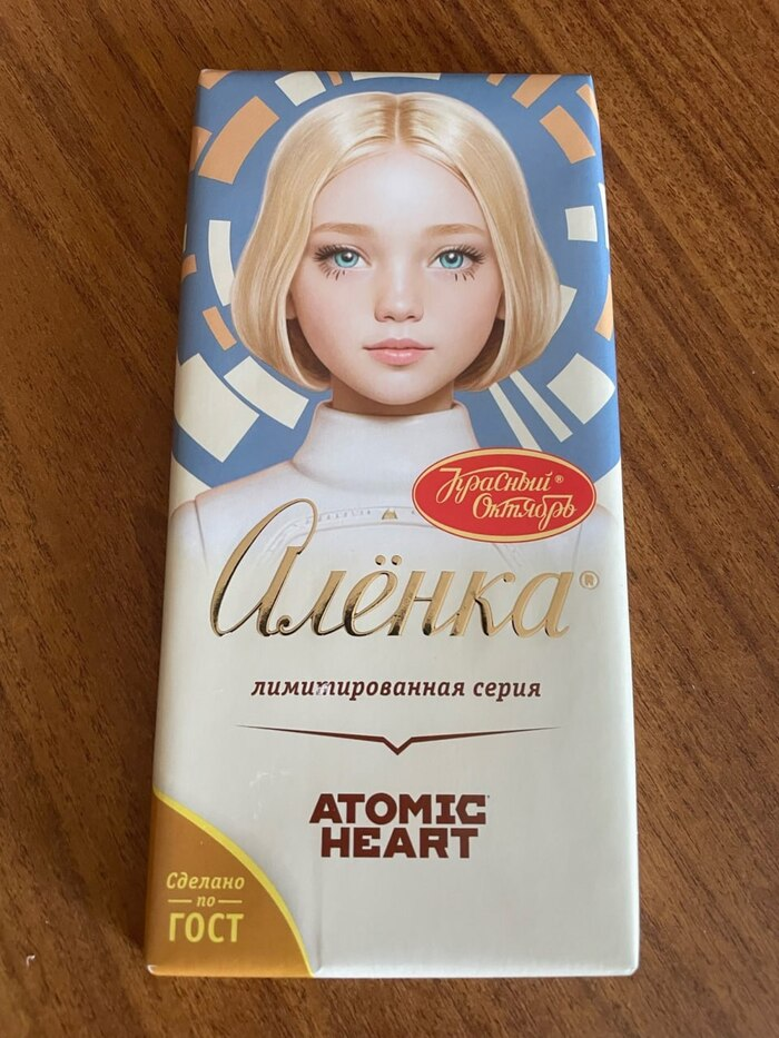 Появилась информация о коллабе Atomic Heart и кондитерской фабрики «Красный октябрь». Сообщают о выпуске лимитированной серии шоколада «Алёнка» в новой упаковке.