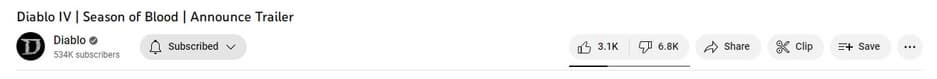 Blizzard представила второй сезон Diablo 4, получивший название «Сезон крови» (Season of Blood). Разработчики обещают новых боссов, противников, экипировку, оружие и награды. К несчастью для Blizzard, игроки не очень верят обещаниям компании после постыдного по мнению многих первого сезона, и глумятся над Diablo 4 и разработчиками в комментариях под роликом, у которого уже почти 7 тысяч пальцев вниз против 3 тысяч пальцев вверх.