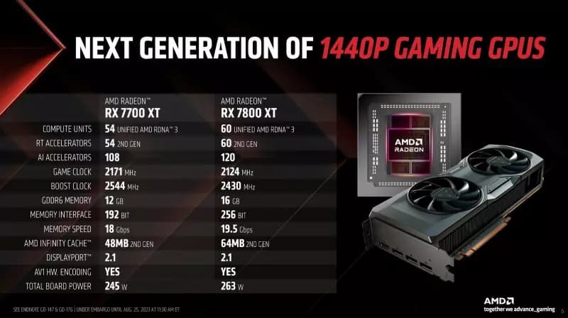 На проходящей выставке gamescom 2023 компания AMD представила новые видеокарты, предназначенные, в первую очередь, для игр с разрешением 1440p. Речь о моделях Radeon RX 7700 XT и 7800 XT.