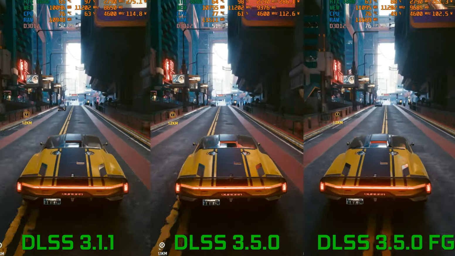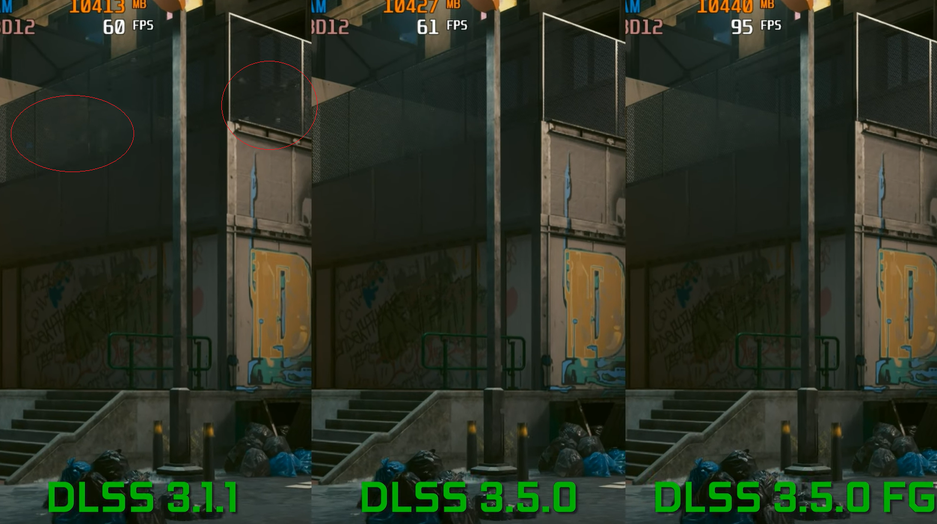 Сравнивали Cyberpunk 2077 при DLSS 3.1 и при DLSS 3.5 с включенной генерацией кадров и без.