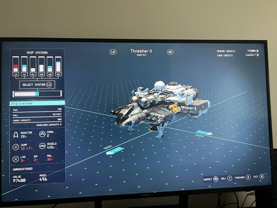 В Starfield корабли разной ценовой категории, есть за ~60-80 тысяч, а также 130+. Ранее у наблюдателей возникали опасения по поводу экономики: в одном из роликов заметили, что бутерброды в мире игры Bethesda настолько дорогие, что за горстку можно купить целый космический корабль.