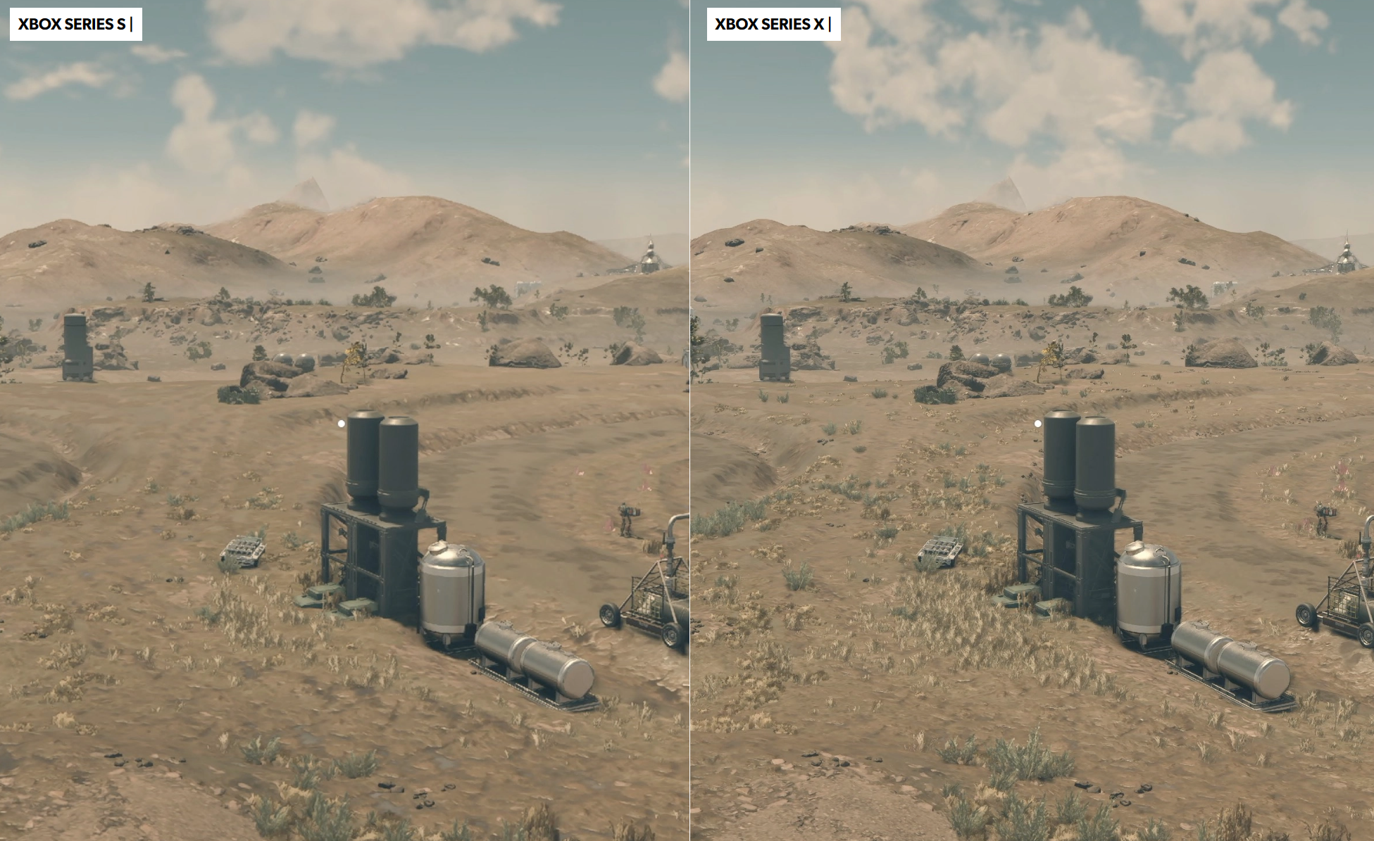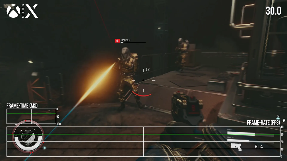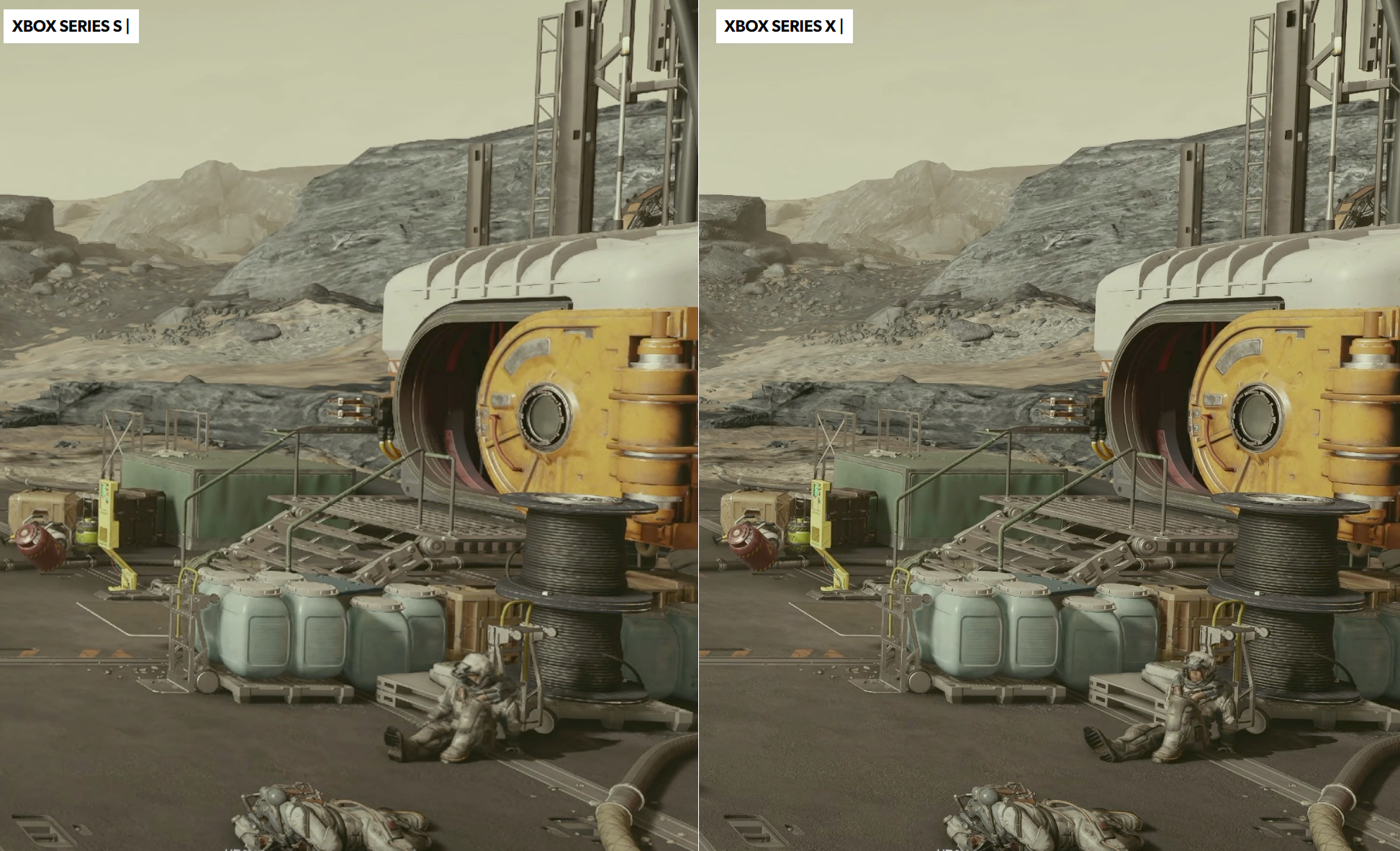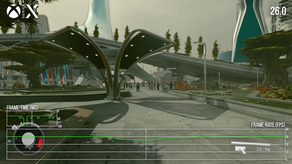 Starfield на Xbox Series X|S работает только при 30 FPS. Заметно, что мир Starfield сильно сегментирован: часто встречаются загрузки (изредка они маскируются какой-нибудь анимацией). Специалист Digital Foundry не ожидал от игры бесшовного опыта, но всё же такое раздражает. В целом игра работает неплохо, но в крупном городе может упасть частота кадров.