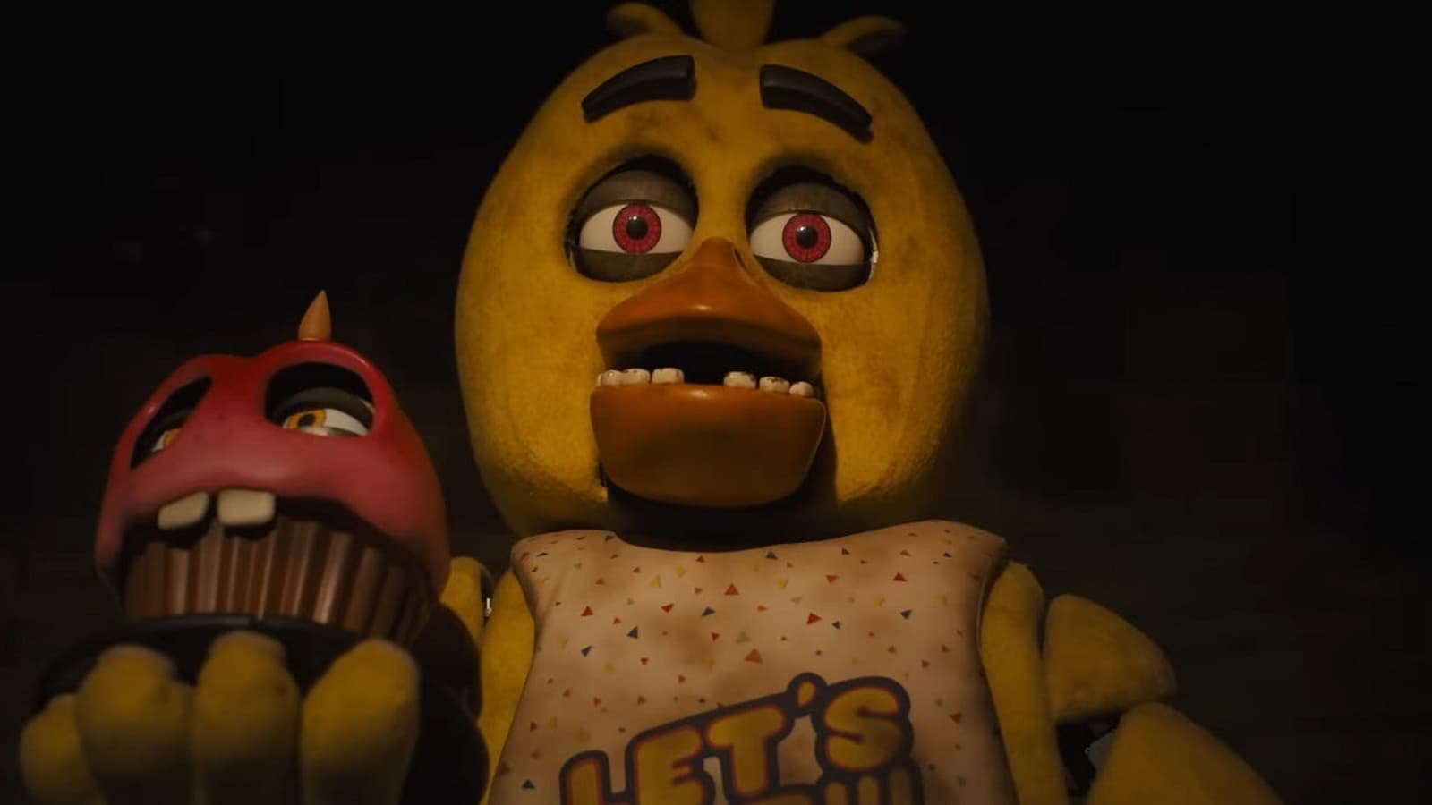 В двухминутном роликов нашлось место для каждого из аниматроников-убийц. Так, мы видим плюшевого мишку Фредди, лисенка Фокси, кролика Бонни, курицы Чики и розового кекса Капкейка, занятых поеданием лица некоего несчастного. Не обошлось без криков, черного юмора и мрачных персонажей.