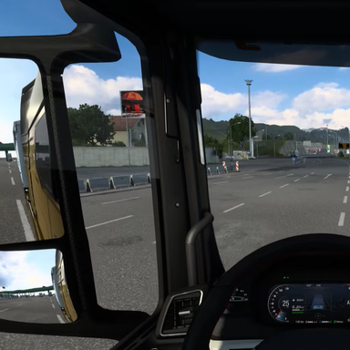Путь виртуального водителя в Euro Truck Simulator 2 начинается на контрольно-пропускном пункте. После проверки документов он продолжает движение: проезжает несколько мостов, наблюдает местные красоты.