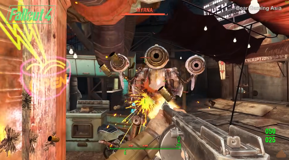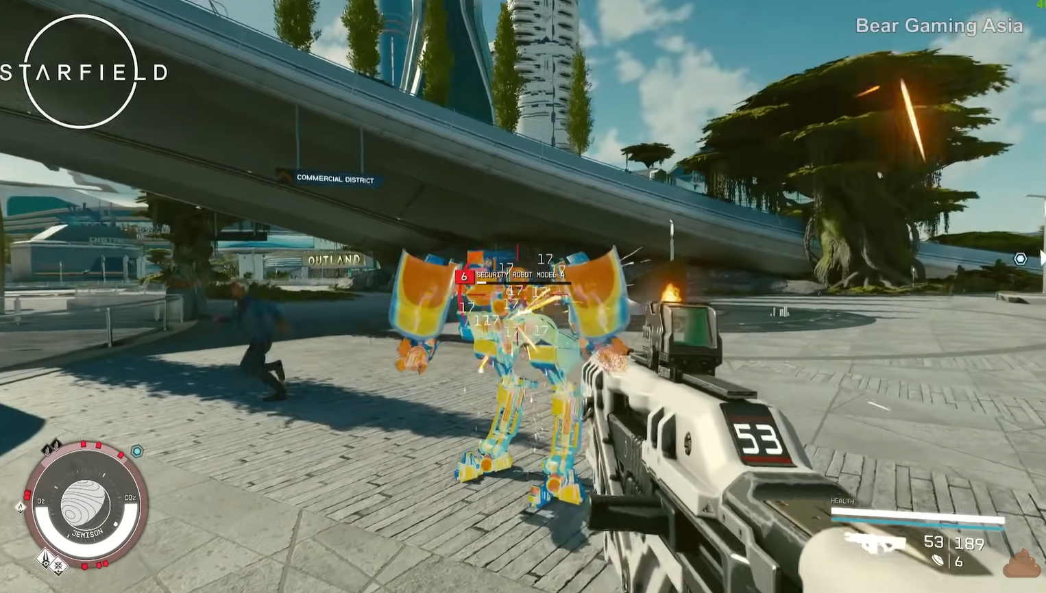 На 6:18 блогер расстреливает робота. В Fallout 4 остаются повреждения, а вот в Starfield это выглядит похуже (а ещё при стрельбе вылетают гильзы).
