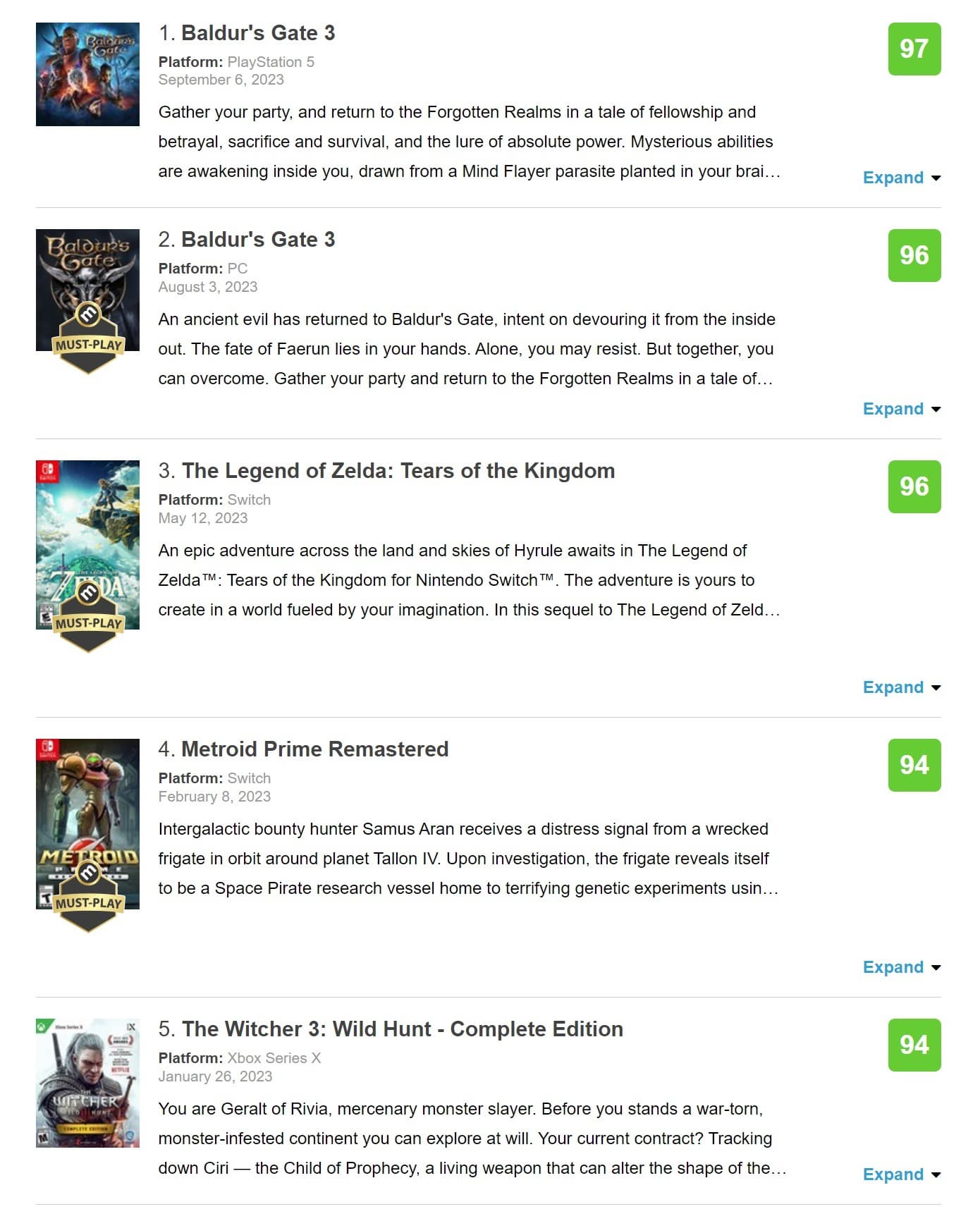 В 2023 году выйдет еще несколько потенциально сильных игр, но трудно сказать, смогут ли, например, Alan Wake 2, Spider-Man 2 или Forza Motorsport добиться более высокого среднего рейтинга.