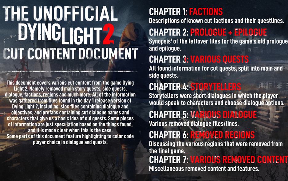 Сообщество Dying Light 2 Stay Human попыталось собрать информацию о том, какой контент Techland вырезала. Материалы объединили в каталог, объём которого превышает 200 страниц.