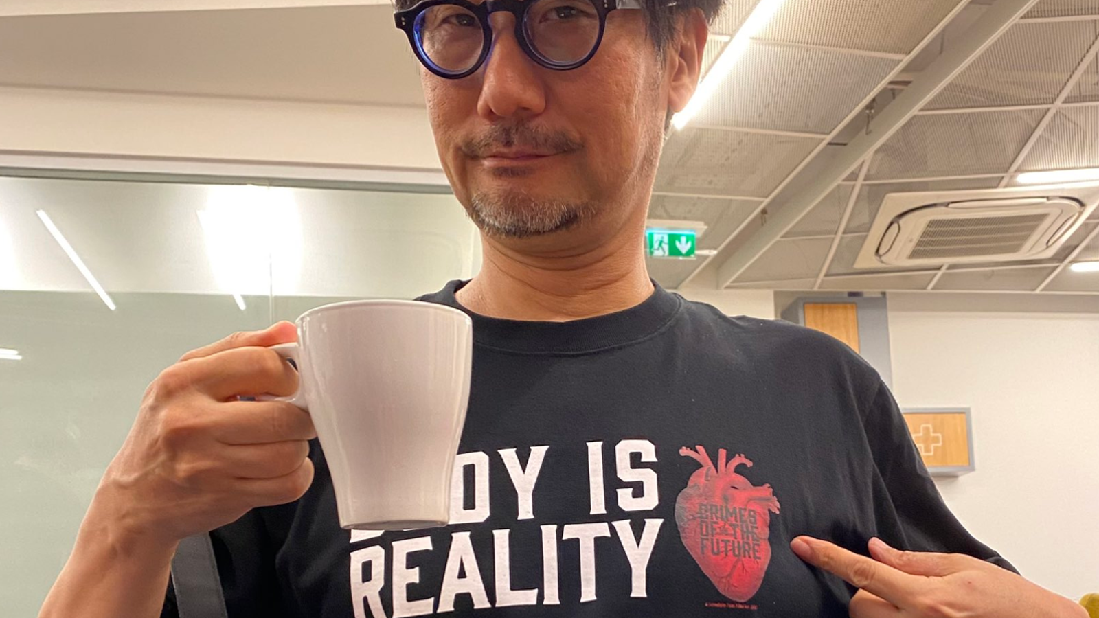 Также Хидео Кодзима акцентирует кадр на объявлении Bethesda в главном меню на японском языке (игра получила полную японскую локализацию, текст + озвучка).