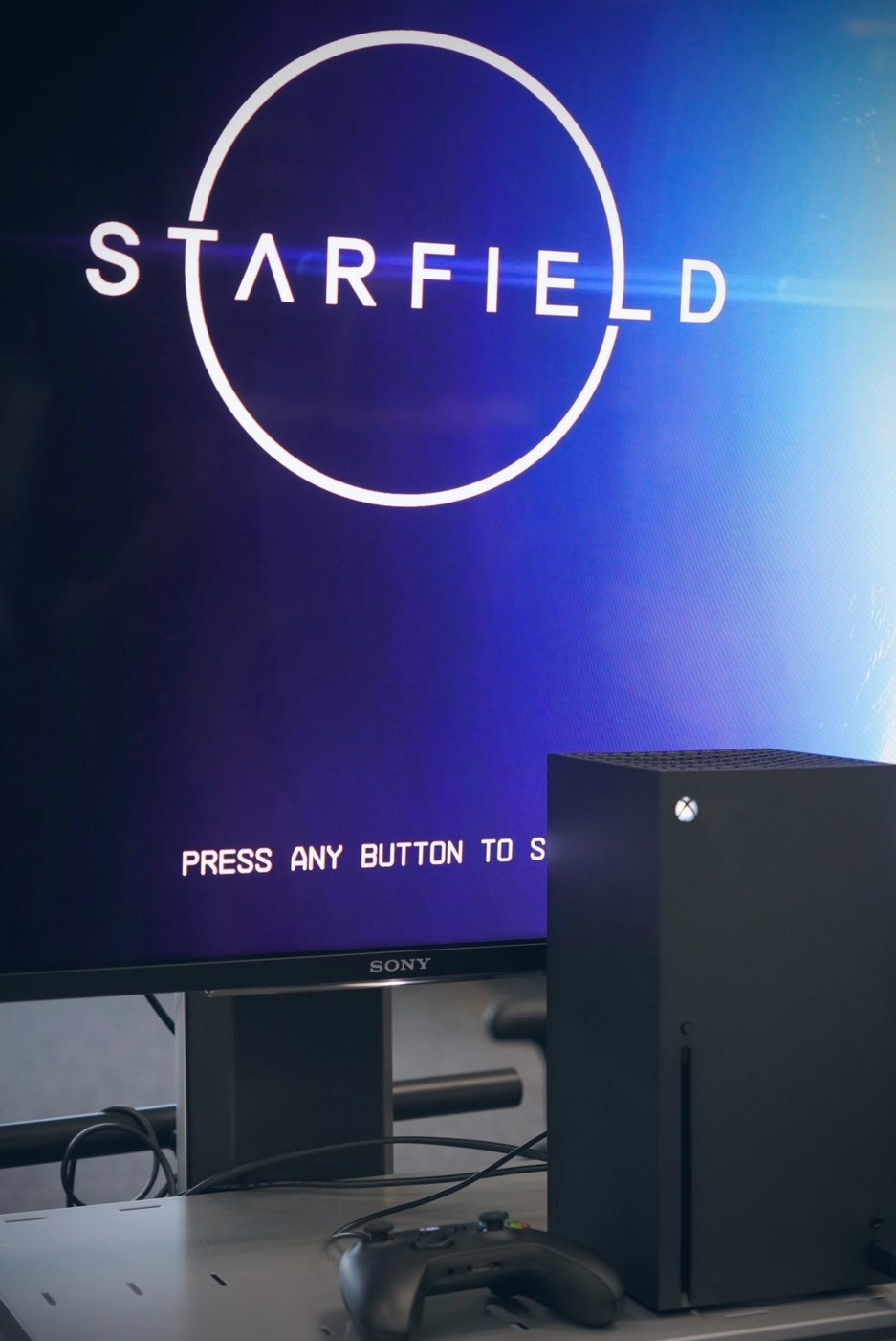 Сама игра запущена на консоли нового поколения Xbox Series X, а вот вывод изображения осуществляется на экран с логотипом Sony.
