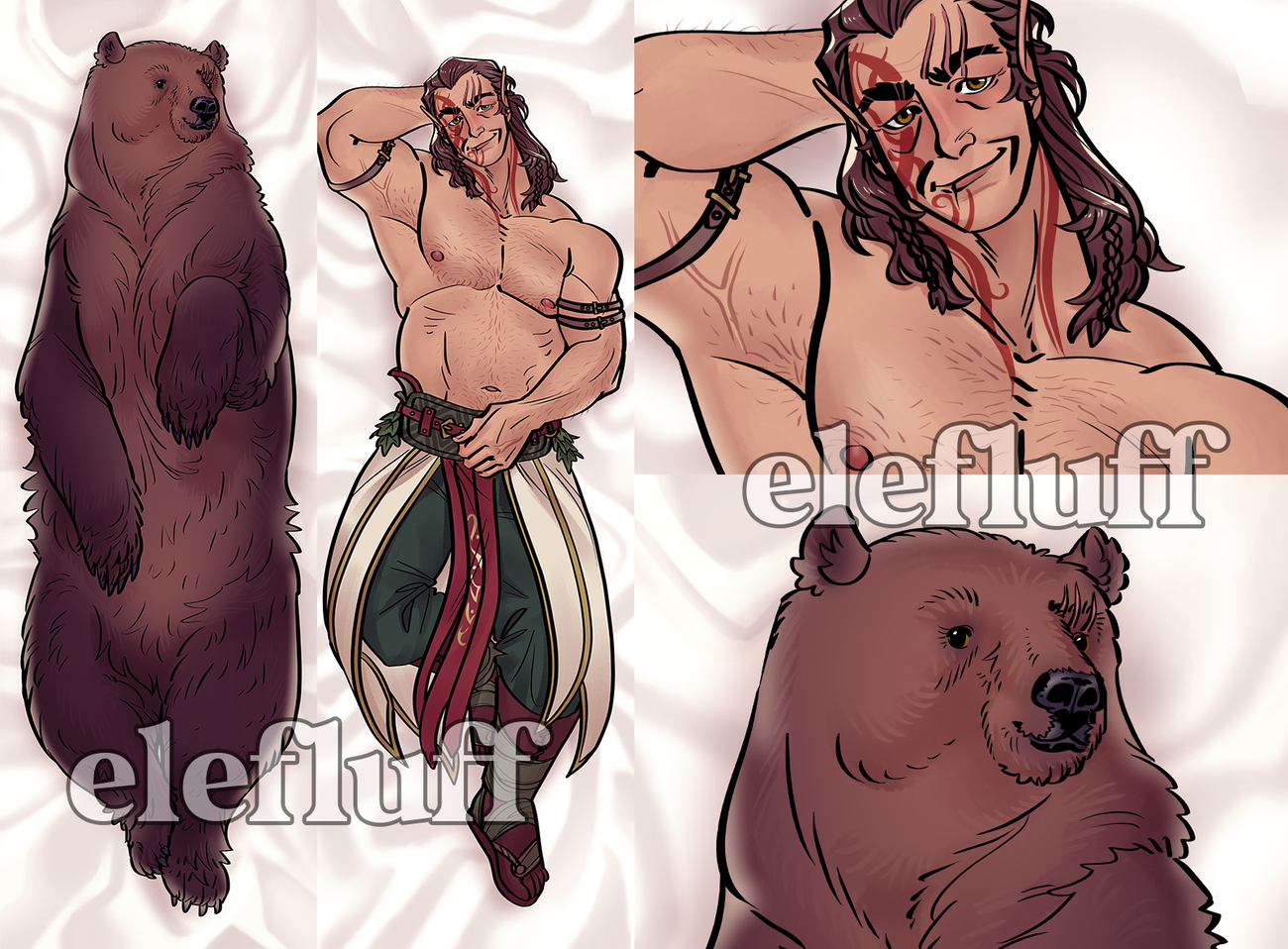 Что особенно интересно некоторым фанатам, среди таких персонажей отметился легендарный медведь. Если Астарион и Карлах с обратной стороны просто изображены с меньшим количеством одежды, то у друида красуется та самая форма, которая завирусилась после пикантной сцены.