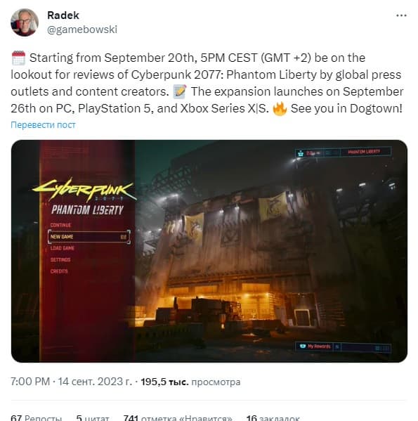 CD Projekt Red назвала дату и время выхода финальных редакционных впечатлений от дополнения к Cyberpunk 2077. Эмбарго снимут 20 сентября в 18:00 по московскому времени.