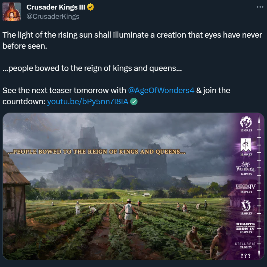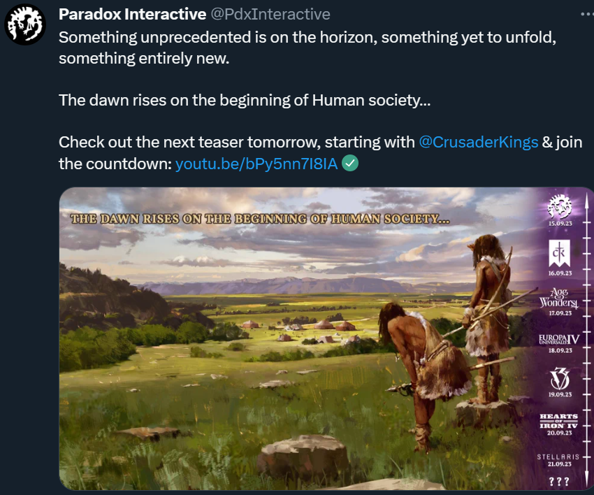 К анонсу Paradox Interactive подводит плавно: раскрыть всё должны 21 сентября, показали дорожную карту анонса с первой подсказкой.