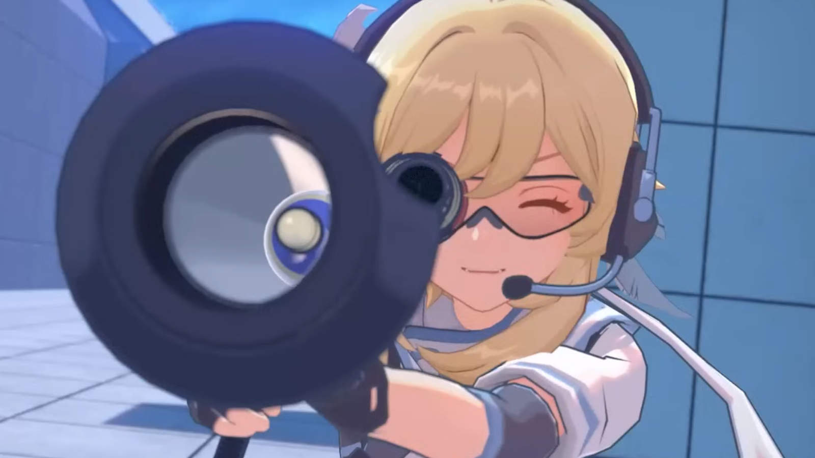 В представленном тизере HoYoFair Люмин (Путешественница) из Genshin Impact отправляется в будущее и использует огнестрельное оружие, например автомат, а также RPG.