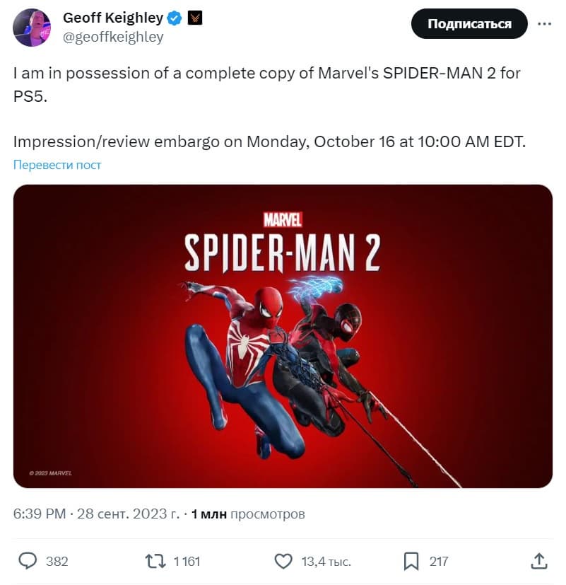 Ответ на вопрос: «Станет ли “Человек-паук 2” хитом» появится через несколько недель. Sony уже рассылает коды цифровой версии игры журналистам и разработчикам.