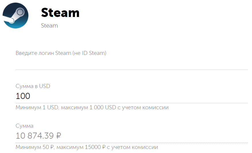 Надо ввести логин Steam и указать сумму в долларах (списываются рубли). По состоянию на 30 сентября 2023 года 100 долларов это 10 874.39 рублей. Такой способ должен сработать не только для российского, но и казахстанского аккаунта Steam.