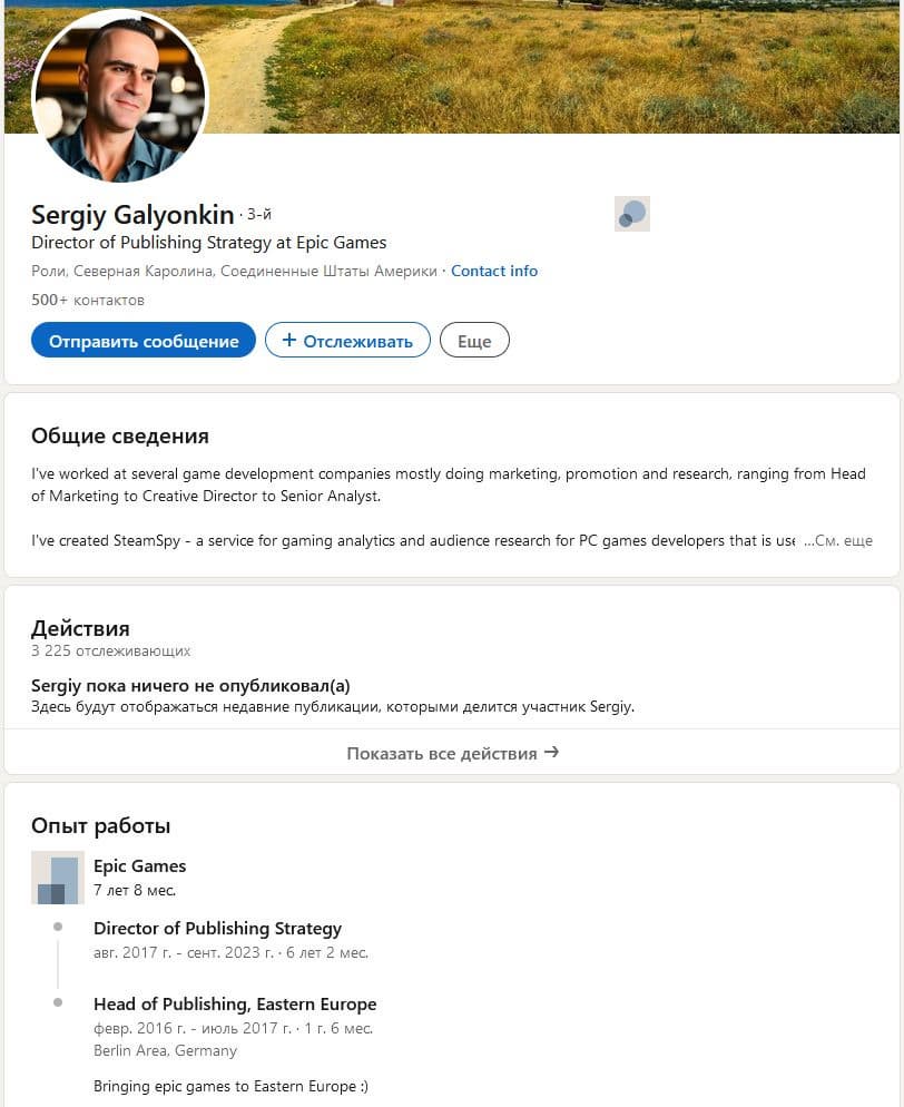 После волны сокращений в Epic Games, похоже, под «каток» попал и Галёнкин. Возможно, есть и другие причины или уход в другое место. Тем не менее в его профиле Linkedin говорится, что деятельность в компании прекратилась в сентябре 2023 года, спустя 7 лет и 8 месяцев.