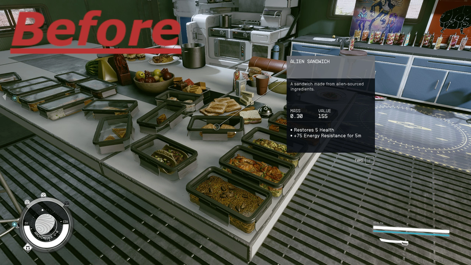 Моддер Tank-girl444 (Me444) представил проект Plated not Crated: он предлагает размещать еду на тарелках. Небольшая деталь полностью меняет представление о еде: тарелки отлично вписываются в стиль Starfield и положительно сказываются на общей картине.