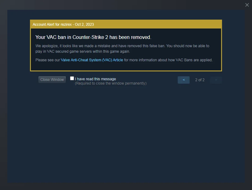 Похоже, что Valve тихо признала ошибку: стали появляться сообщения о разблокировке пострадавших игроков в Counter-Strike 2. Есть мнение, что бан снимают в ручном режиме (он не спал со всех одновременно).