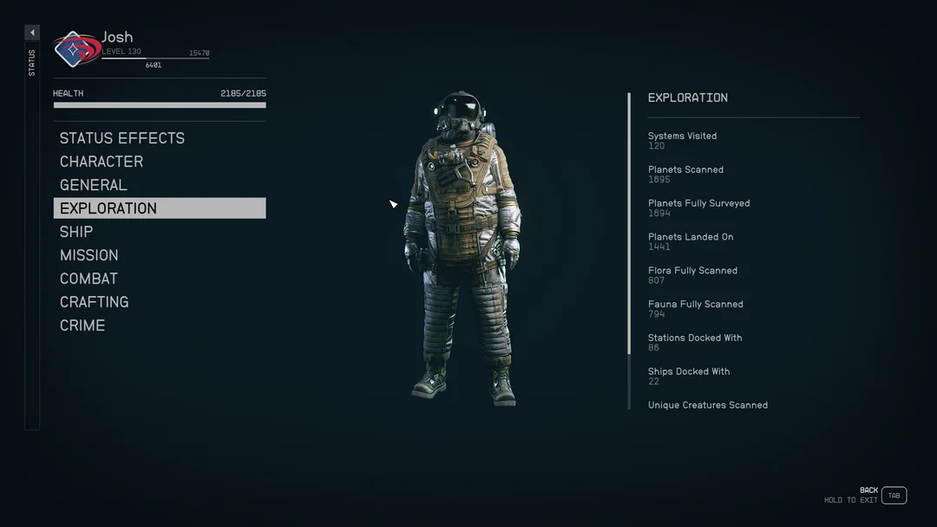 Судя по статистике DoomZero, он посетил 120 систем и просканировал 1695 планет. Высадку осуществил на 1441 планету.